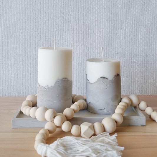 Set de Velas (10 cm, 13 cm) + Bandeja decorativa de cemento Rectangular
